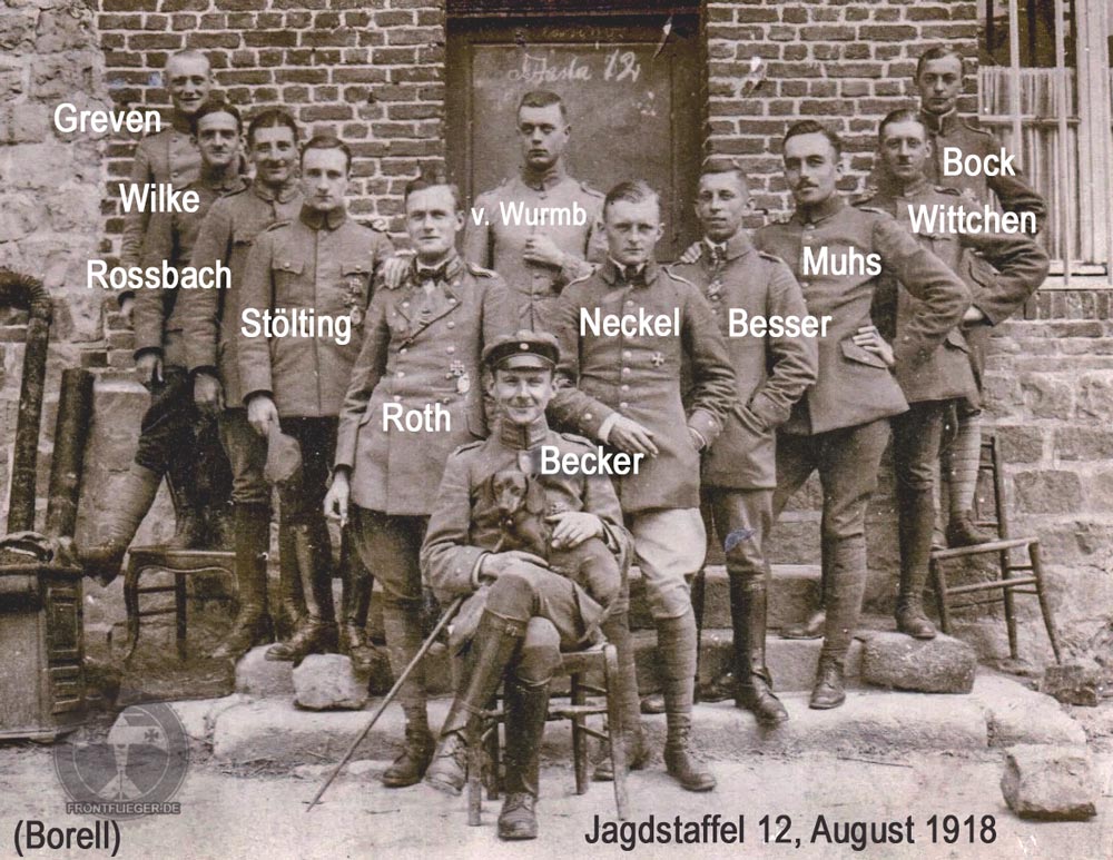 Gruppenaufnahme der Jagdstaffel 12 vom August 1918: