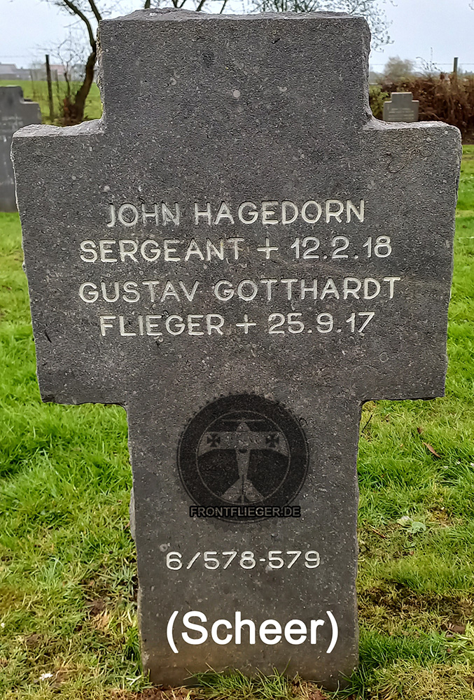 Er war Flugzeugführer der Abteilung und starb gemeinsam mit seinem Beobachter - Heinrich Schmidt - hinter der französischen Front. Sie wurden in Neufmaisons bestattet - und nach dem Krieg nach Gerbeviller überführt. Allerdings konnten die Namen nicht mehr zugeordnet werden. |
