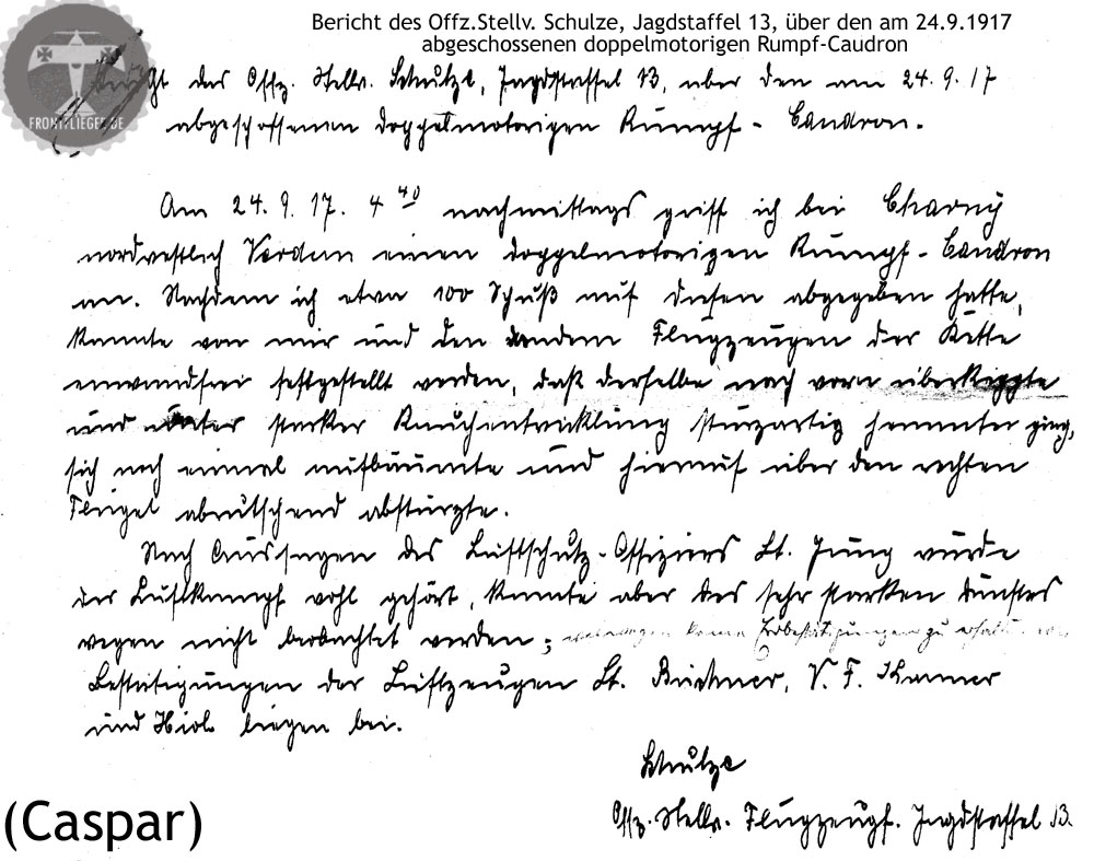 erzielten Luftsieg über eine 'Rumpf-Caudron' (wurde allerdings nicht anerkannt). |