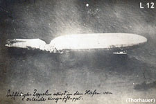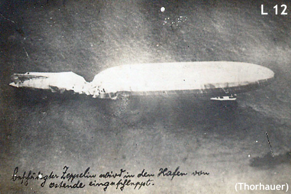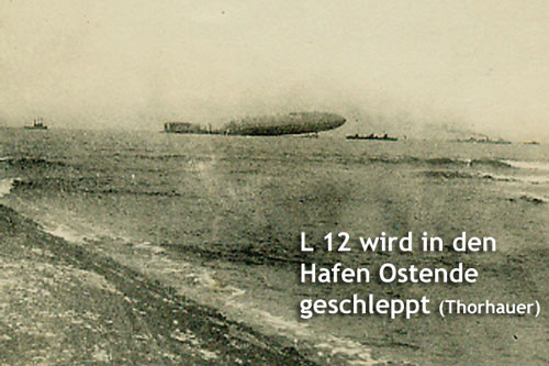 Am 9. August 1915 unternahm L 12 unter Oblt. z. S. Werner Peterson eine Feindfahrt nach London. Hierbei wurde das Luftschiff angeschossen und geriet in eine Schieflage. Peterson steuerte L 12 auf die offene See. Ein deutsche Zerstörer schleppte das Luftschiff in den Hafen von Ostende - wo es schließlich in Flammen aufging.