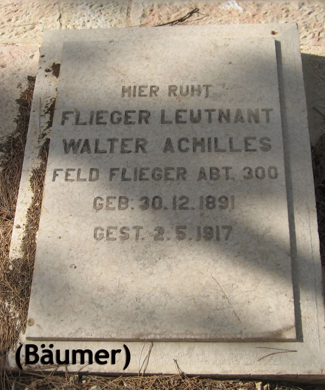 Achilles, Walter (Lt. d. R.) FA 300 'Pascha' * 30.12.1891 Braunschweig/ Watenbüttel + 02.05.1917 Jerusalem |