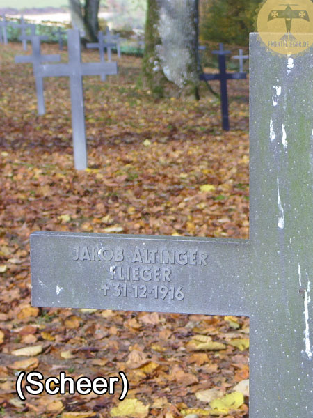 Er gehörte zum Bodenpersonal und starb an einer Krankheit/ Verwundung. Auf dem Grabkreuz steht 'Altinger' in der Verlustliste 'Altmeyer'. Welcher Name ist der richtige? |