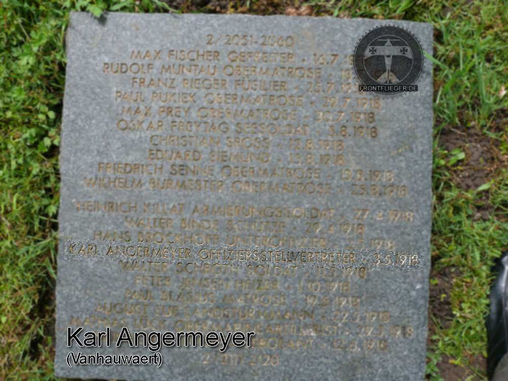 Awe, Karl (Lftsch.) Luftschiffer-Ersatz-Abteilung 2 * 22.10.1900 Hamburg + 03.11.1918 Darmstadt |