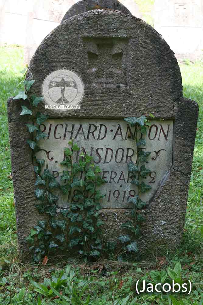 - Grab verschollen - | Er war Offizier im 12. (bayr.) IR. Starb als Beobachter, als australische Bodentruppen den Flugplatz stürmten. Er wurde vor Ort (heute Afula/ Israel) bestattet. Das Grab ist verschollen. Sein Flugzeugführer, Ludwig Schürer, geriet verwundet in Gefangenschaft. |