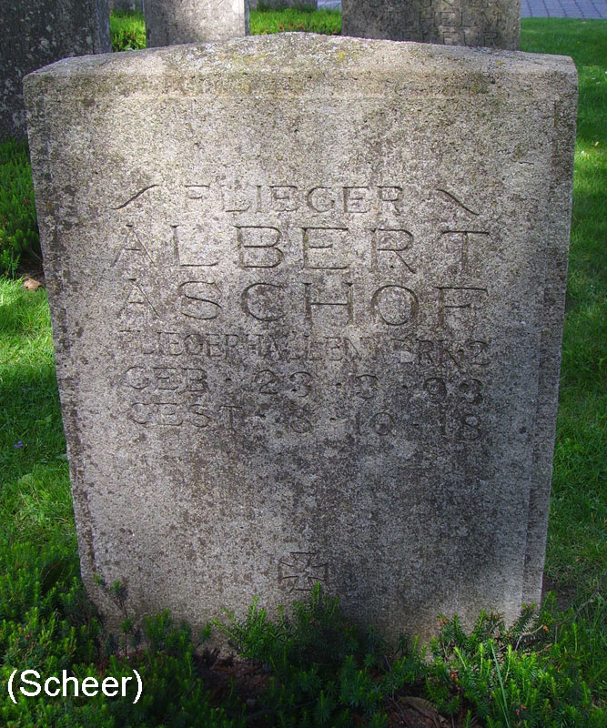 Aschof, Albert (Flg.) Fliegerhallen-Kompanie 2 * 23.03.1893 Hamburg + 08.10.1918 Münster |