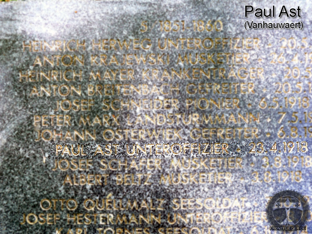 Ast, Paul (Uffz.) AFP 4 * 30.09.1894 Heidevorwerk + 23.04.1918 Gent |