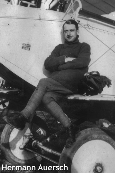 Er wurde in Leipzig-Lindenthal zum Flugzeugführer ausgebildet. An der Front war er Flugzeugführer. Er diente in der Kasta 18. Er starb mit Richard Ludwig, seinem Bordschützen. Der Flugplatz der Schutzstaffel befand sich in Villers-les-Cagnicourt. Eventuell verunglückten sie auf dem Weg zum Armeeflugpark. Familie Auersch berichtet, die Maschine sei von deutschen Truppen abgeschossen worden. - Die Grabstätte ist verschollen. Vermutlich passierte dies bei der Umbettung. |