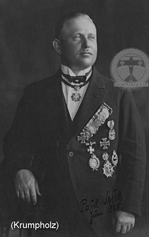 (unbekannt) | Er diente in der Kasta 30 / Kagohl 5 bevor er im Oktober 1916 zur Jasta 10 wechselte. Er war unter anderem Träger des Militär-St. Heinrich Medaille. Im Herbst 1917 wurde er verwundet, kehrte im Februar 1918 zur Jasta zurück. -- Im Zweiten Weltkrieg diente er in der Luftwaffe, geriet in sowjetische Kriegsgefangenschaft (POW) und verstarb. |
