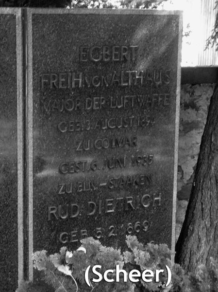 Althaus, Egbert Freiherr von * 03.08.1894 Colmar/ Elsass + 06.06.1935 Berlin-Staaken |