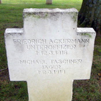 Sein Kamerad Reinhard Schaffrath ruht auf der Kriegsgräberstätte Ville-devant-Chaumont. Vermutlich starb der eine beim Absturz, der andere erst im Lazarett. |