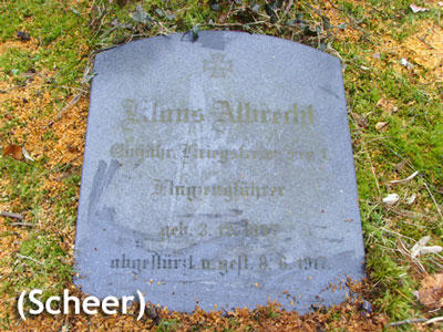 Albrecht, Klaus (Gefr.) FEA 1 * 03.12.1897 Potsdam + 08.06.1917 Köslin |