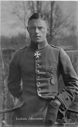Ehemaliger Angehöriger der FA A 227, dann bei der JastaSchule I ausgebildet. Er diente bei der Jasta 29 und dann - mit seinem Bruder Carl Allmenröder - bei der Jasta 11. Er wurde im Mai 1917 schwer verwundet - und fand keine weitere Kriegsverwendung. - Er heiratete später die ehemalige Verlobte (sie starb ca. 1999) seines Bruders. |
