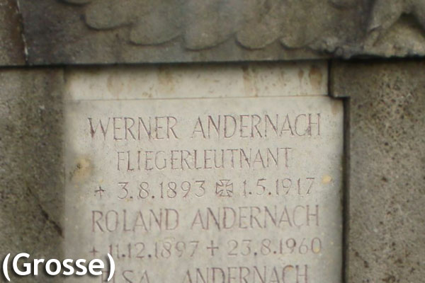 (unbekannt) | Sein Vater war Unternehmer in Osterode/ Harz. Er promovierte (in Berlin) im Fach Chemie. Anfang 1915 kam er zur Feldfliegerabteilung 11. Bei einem Flug über Compiègne wurde er verwundet und verstarb noch am selben Tag in Noyon. - Ein Grab kann z. Zt. nicht nachgewiesen werden. |