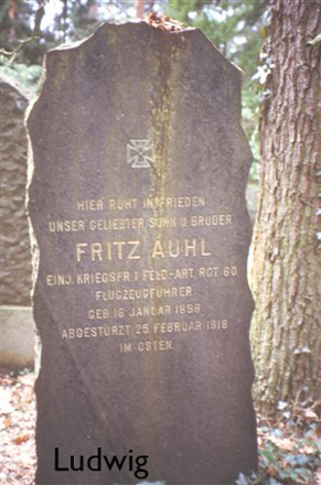 Auhl, Fritz (Flg.) Art.Flg.Sch. Doblen * 16.01.1898 Berlin + 25.2.1918 Doblen |
