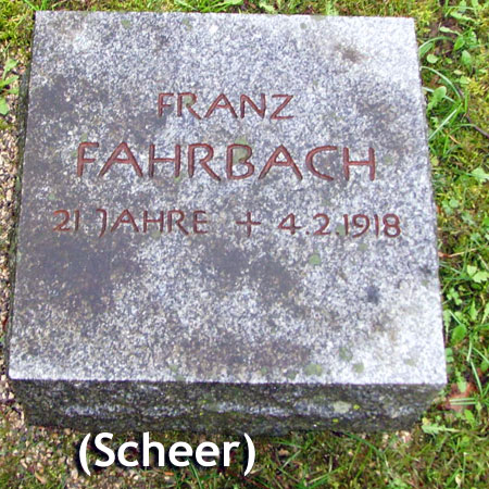 Fahrbach, Franz (Uffz.) FEA 1 b * 18.09.1896 München + 04.02.1918 Hochmutting |