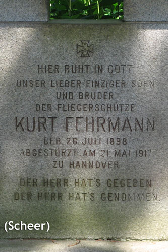 Fehrmann, Kurt (Flg.) FEA 5 * 26.07.1898 Berlin + 21.05.1917 Hannover |