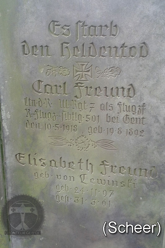Fröhner, Ernst Hermann (Sgt.) Jasta 18 * 28.11.1890 Gablenz + 03.02.1918 Grandlup |