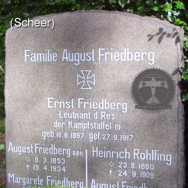 Friedrich, Walter (Uffz.) FEA 6 * 21.11.1887 Berlin + 16./18.05.1917 Großenhain |