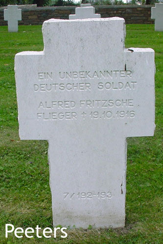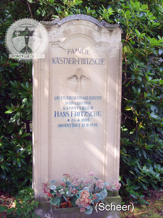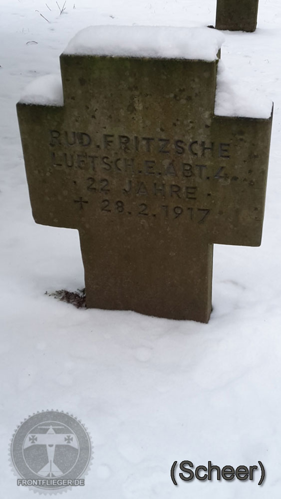 Fritzsche, Alfred (Flg.) Armee-Flug-Park 1 * 18.12.1886 Meerane + 19.10.1916 Cambrai i. Kr. |