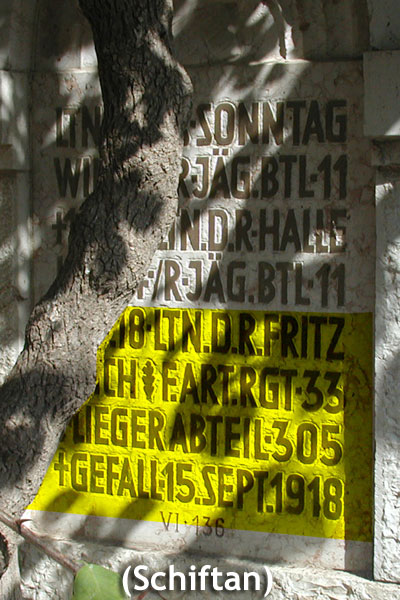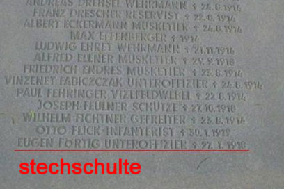 Fritz, August (Lt. d. R.) FA A 282 * 21.07.1894 Marburg + 11.05.1917 Mülhausen/ Elsass |