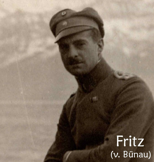 Walther Fritz war im Weltkrieg Leutnant der Reserve im hessischen Füsilier-Regiment Nr. 80 - im Frühjahr 1917 diente er als Beobachter bei der Fliegerabteilung 14, einer Fernaufklärungs-Abteilung. Vermutlich wegen schlechter Sicht verflog sich die Besatzung Fritz/Tatje am 27. Mai 1917 und landete mit ihrer DFW C.V in der neutralen Schweiz. Beide Offiziere wurden interniert und verließen die Schweiz erst Ende 1919 wieder. |