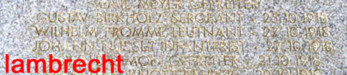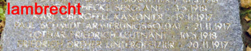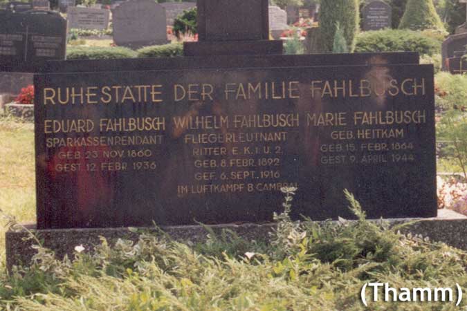 Fahlbusch, Wilhelm (Lt. d. R.) Kasta 1/ KG 1 * 08.02.1892 Hannover + 06.09.1916 Malincourt |