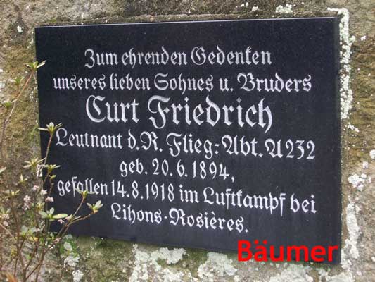Gieboldehausen liegt bei Göttingen. Gemeinsam mit seinem Beoachter, Hans Rosencrantz, war er erfolgreicher Kampfflieger. Gemeinsam starben sie in ihrem Roland-Flugzeug. |
