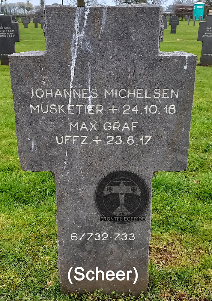 Er war Flugzeugführer der Abteilung und starb gemeinsam mit seinem Beobachter - Heinrich Schmidt - hinter der französischen Front. Sie wurden in Neufmaisons bestattet - und nach dem Krieg nach Gerbeviller überführt. Allerdings konnten die Namen nicht mehr zugeordnet werden. |