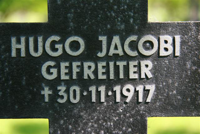 Jacobi, Hugo (Gefr.) Jasta Schule I * 02.06.1892 Rübeland + 30.11.1917 Valenciennes |