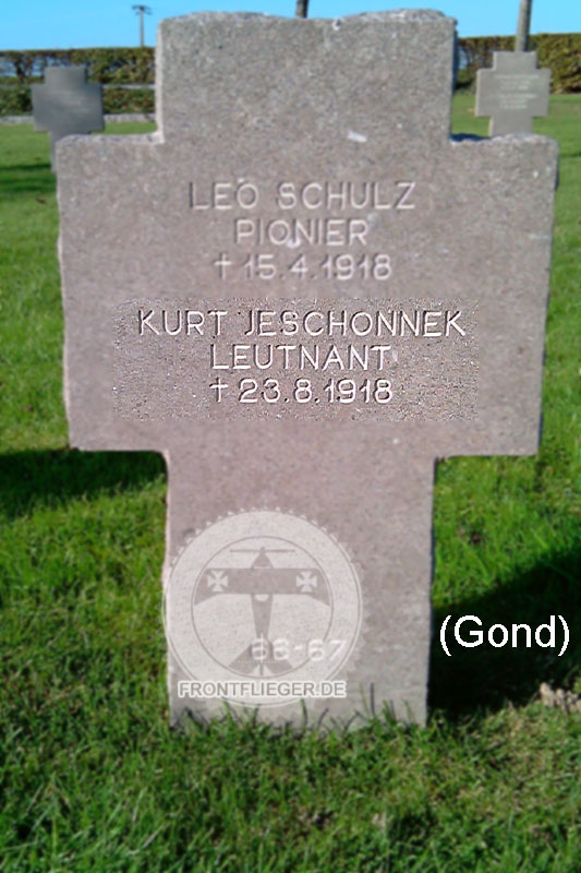 Jeschonnek, Kurt (Lt.) FA A 281 * 07.07.1897 Hohensalza + 23.08.1918 Gondrexon |
