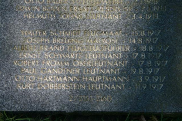 Er wurde am 25.02.1917 im Luftkampf bei Autry schwer verwundet, starb am folgenden Tag in Grandpré |