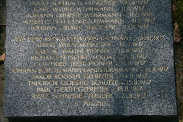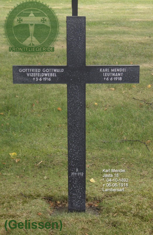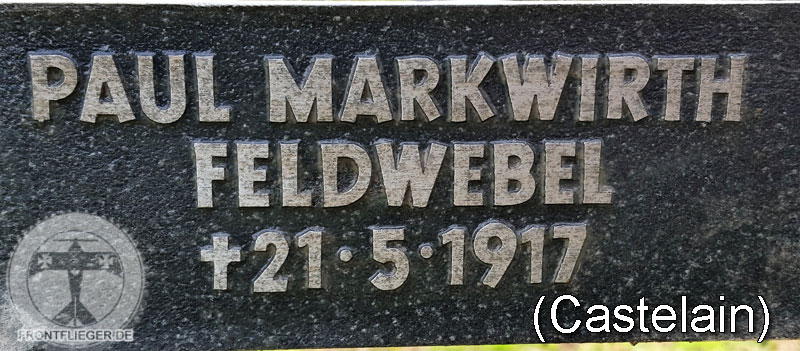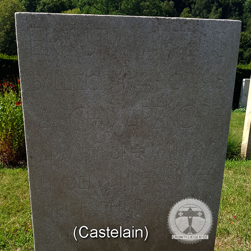 Er war Reserve-Offizier der Fliegertruppe und Flugzeugführer - sein Beobachter war Max Trautmann; Erstbestattung Chambrières. | |||