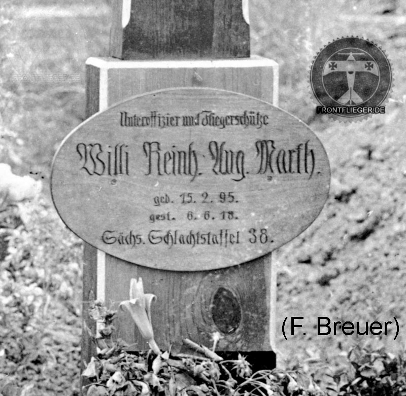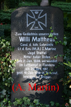 Er war Flugzeugführer, sein Beobachter war Lt. d. R. Franz Straube. Das Todesjahr ist beim VDK mit 1915 falsch angegeben. |