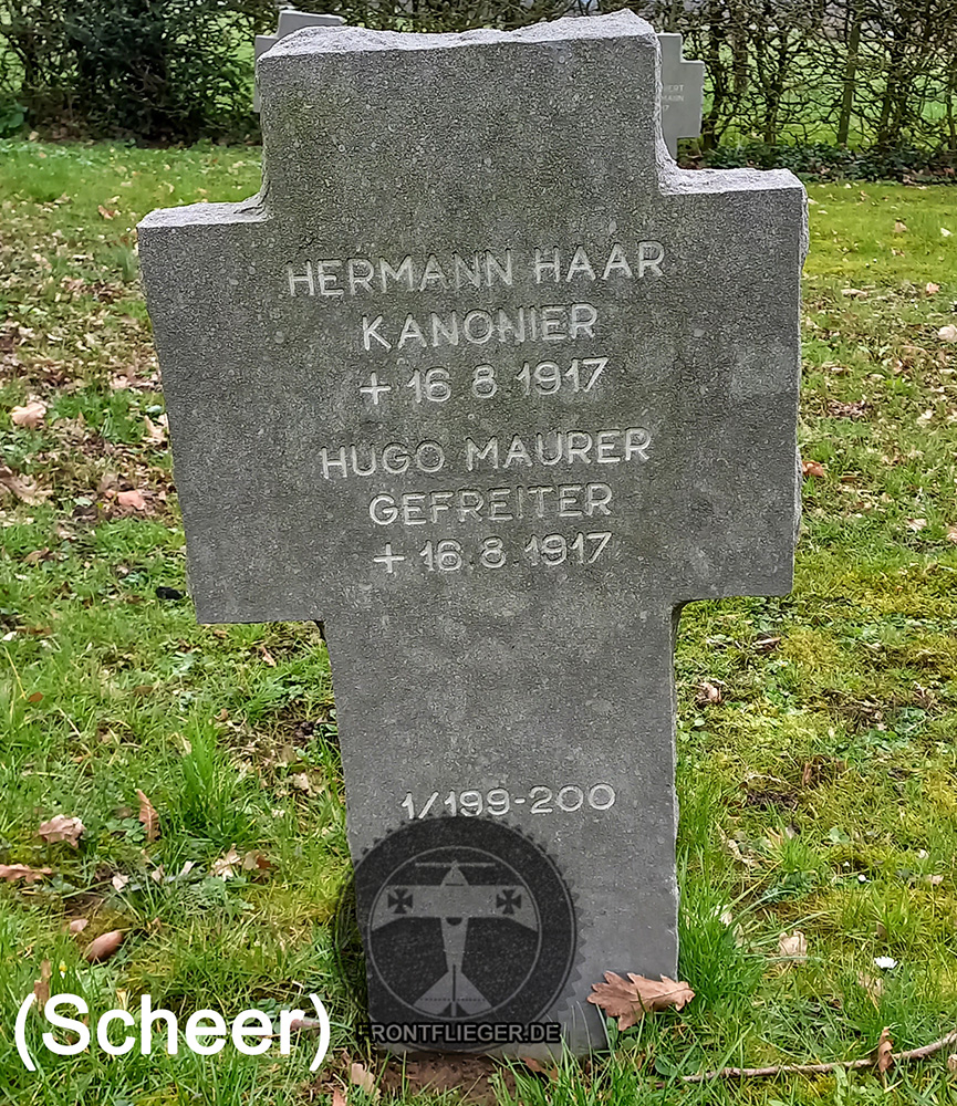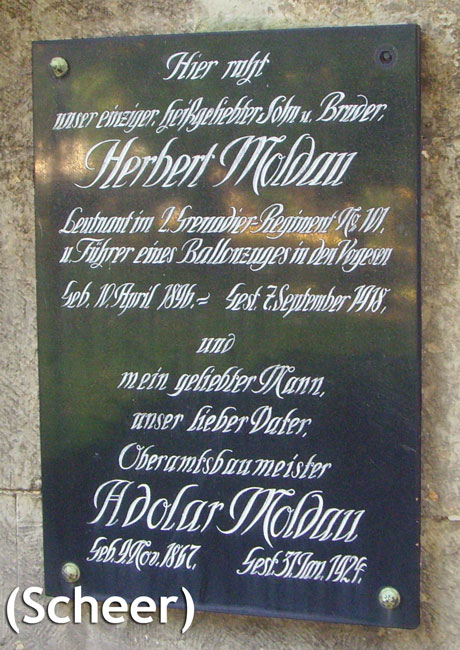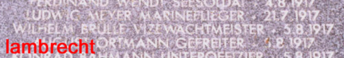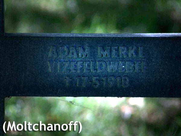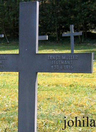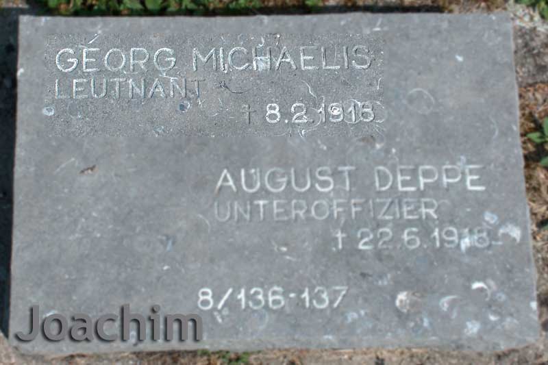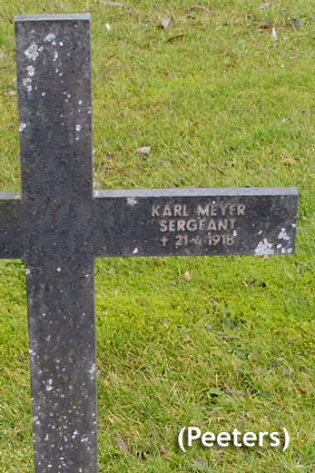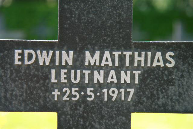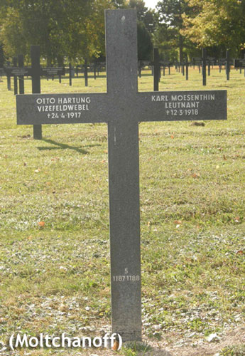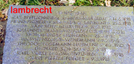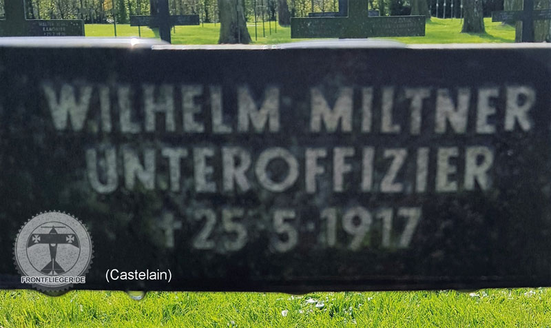 Offizier im IR 117 - Flugzeugbeobachter, er war Träger des 'Kriegsehrenkreuzes für die heldenmütige Tat'. Sein Flugzeugführer war Karl Germer (Grablage derzeit nicht bekannt). |