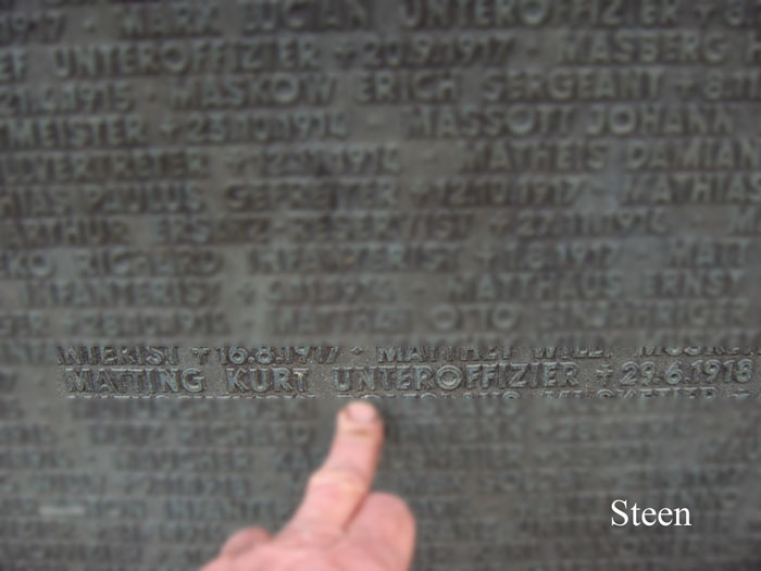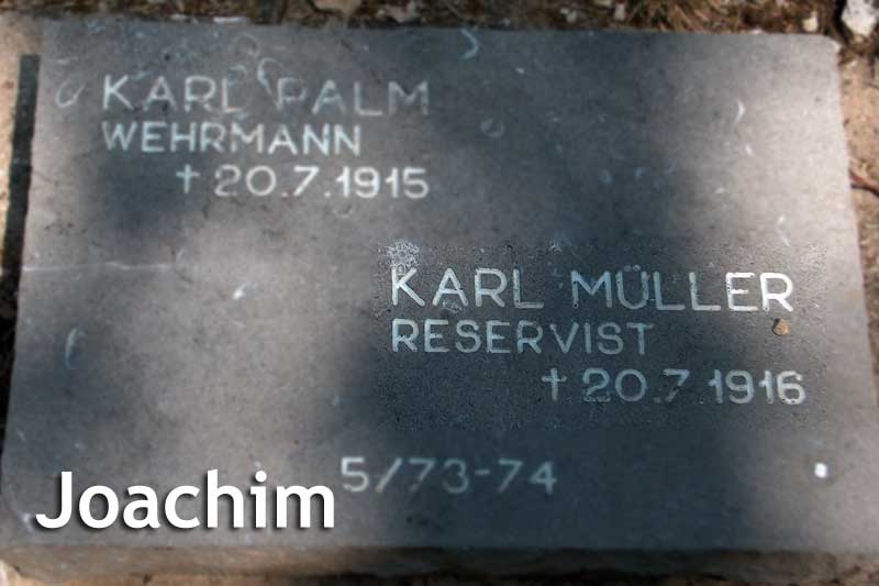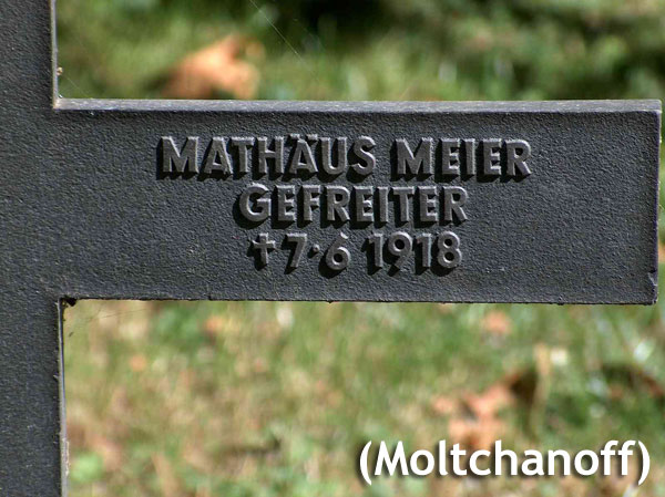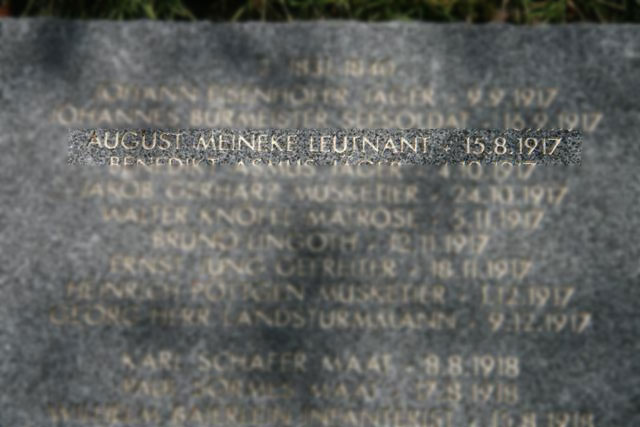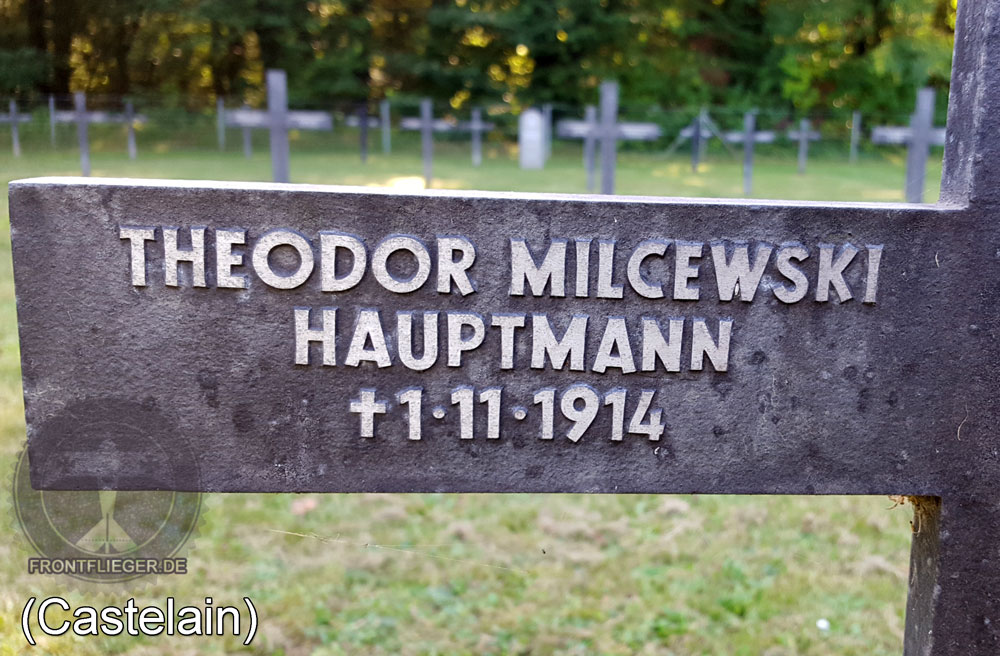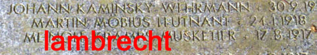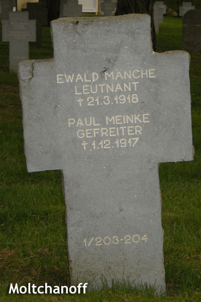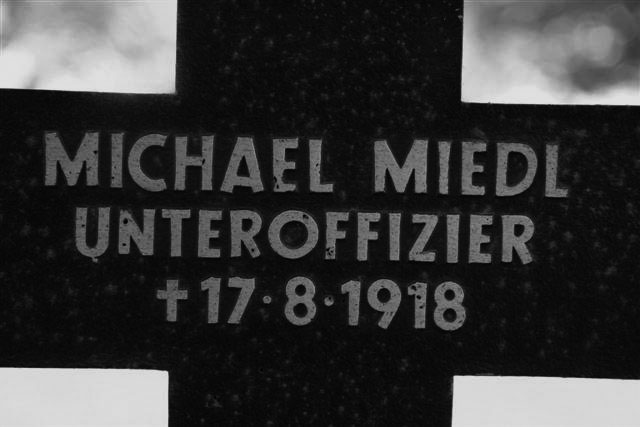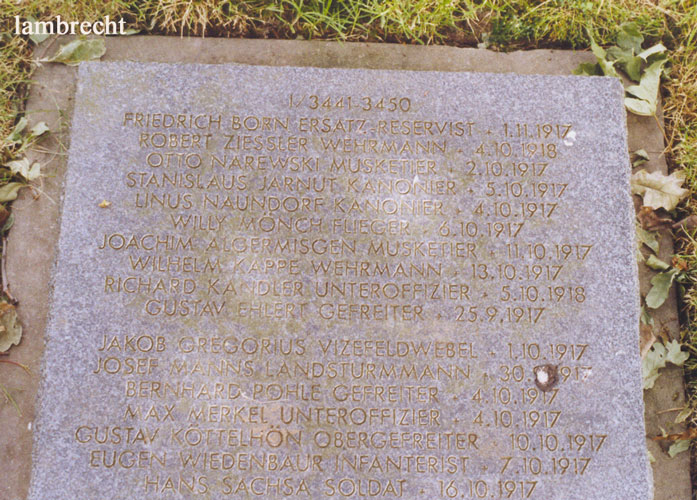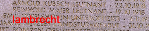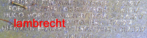 Offizier im IR 117 - Flugzeugbeobachter, er war Träger des 'Kriegsehrenkreuzes für die heldenmütige Tat'. Sein Flugzeugführer war Karl Germer (Grablage derzeit nicht bekannt). |