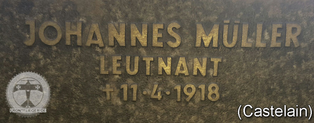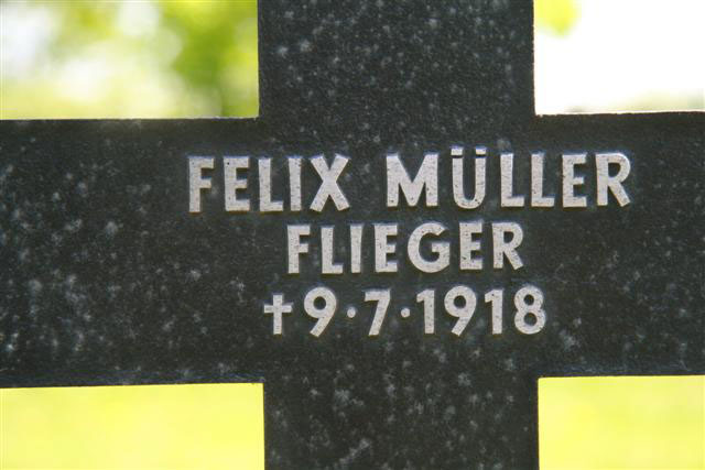 Müller wurde während eines Aufklärungsfluges (Beobachter war Hptm. Wilhelm Wimmer) - am 27. Juni - durch Schüsse in Becken und Oberschenkel schwer verwundet. Trotzdem brachte er das Flugzeug sicher zurück, wurde erfolgreich operiert, verstarb aber trotzdem eine Woche später [Quelle: Nachrichtenblatt Nr. 20/1917; S. 73]. |