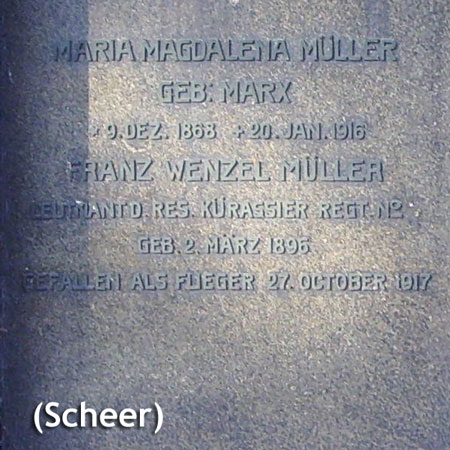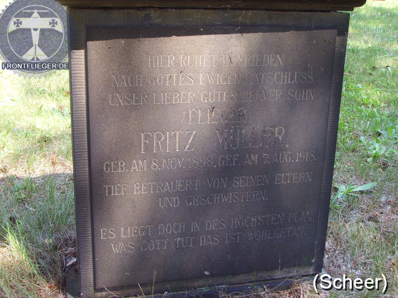 Müller, Karl (Flg.) FEA 3 * 15.07.1889 Mülhausen + 20.07.1916 Mülhausen/ Elsass i. Kr. |