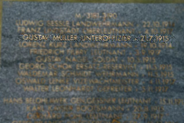 Müller, Reinhold (Gefr.) FEA 10 * 06.11.1895 Heimsheim + 03.08.1918 Böblingen |