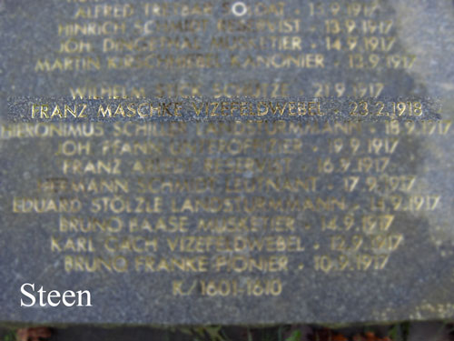 Maschke, Franz (Vfw.) Schusta 1 * 13.06.1891 Kleinkugel + 23.2.1918 Lichtervelde |