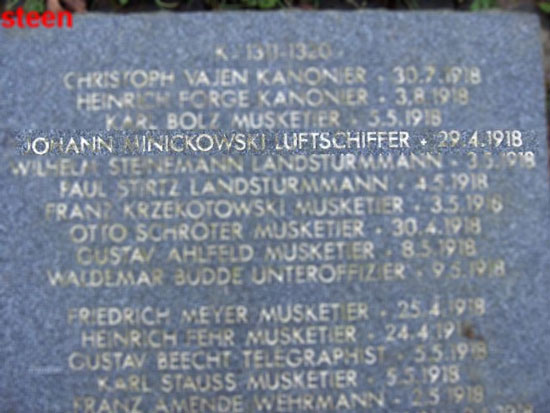 Geburtsdatum vom Grabstein (siehe links) weicht von der Verlustliste (09.01.1887) ab. Besatzungsmitglied eines Heeres- Luftschiffes. |