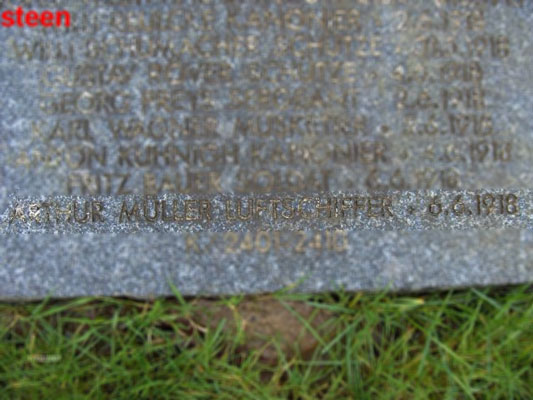 Müller, Karl (Flg.) FA A 240 * 19.11.1896 Mühlhausen + 01.05.1918 Geraadsbergen i. Kr. |