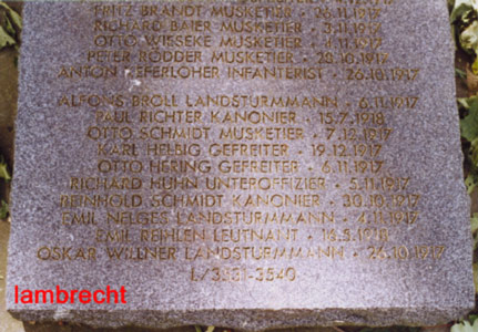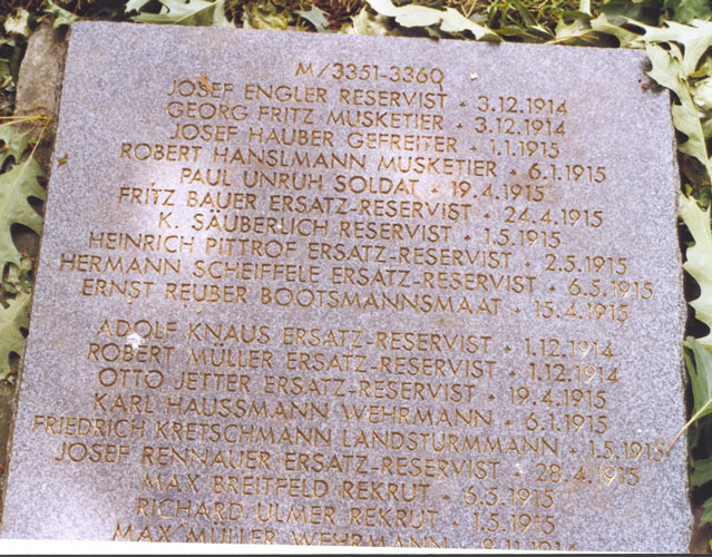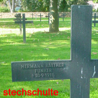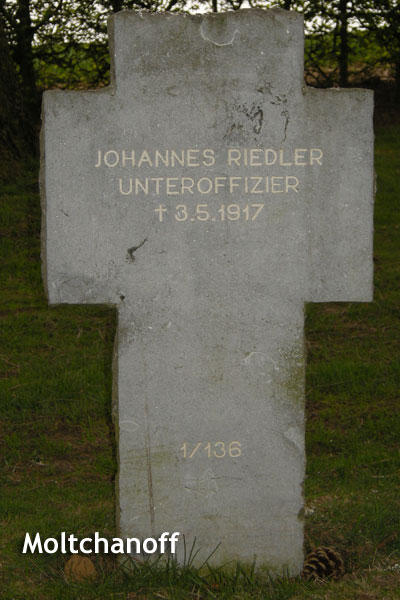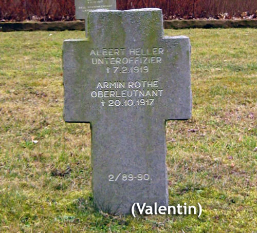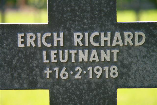Seit Kriegsbegin im IR 107; Im April stürzte er tödlich mit dem Flugzeug ab. Mit ihm fiel Kurt Matthias (für den derzeit kein Grab nachweisbar ist). |
