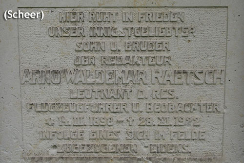 Raetsch, Arno Waldemar * 14.03.1898 (Berlin) + 28.11.1922 (Berlin) |
