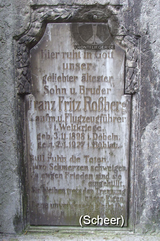 Roßberg, Franz Fritz * 03.11.1898 Döbeln + 02.01.1927 Bühlau |