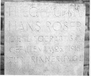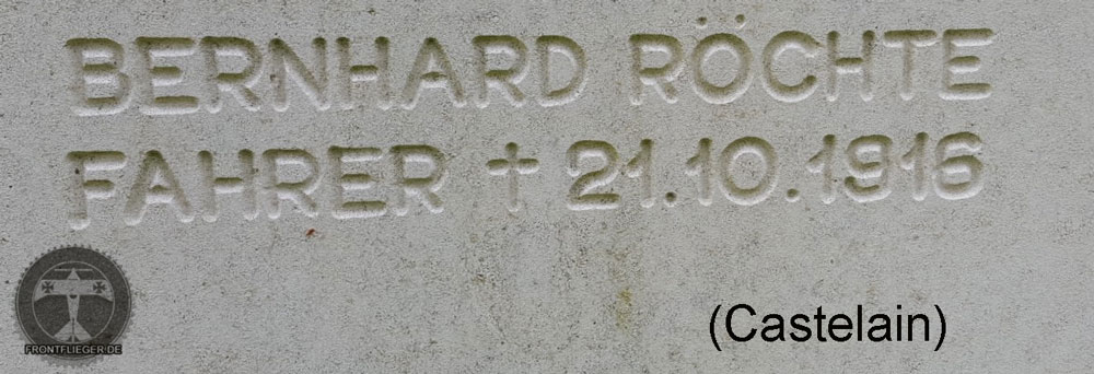 (vermutlich überführt) | Er war Reserve-Offizier im 20. bayrischen Infanterie- Regiment. Bei der Abteilung war er Beobachter und fiel gemeinsam mit seinem Flugzeugführer Paul Baumann. |