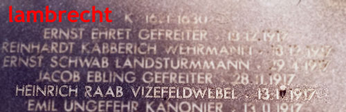 Raab, Heinrich (Vfw.) Schusta 30 b * 28.10.1894 Selb + 13.11.1917 Kortrijk |