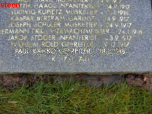 Ranko, Paul (Gefr.) * 29.06.1894 Berlin + 18.02.1918 Kortryk |