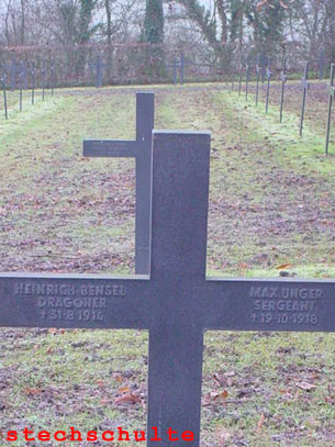 Leutnant im Feld- Artillerie- Regiment 77. Im Krieg war er Flugzeugführer der FA A 251, später im Bogohl 3, Bosta 13 bzw. Bosta 16. Er starb bei einem Absturz bei Lichtervelde/ Belgien. -- Er war Schwiegersohn des Bildhauers Max Unger und wurde deshalb mit im Familiengab bestattet. |