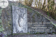 Am Ort des tödlichen Absturzes in Ire-le-Sec (in der Nähe von Marville, Kreuzung der D643 und der D905 südlich von Ire-le-Sec) wurde Walter Höhndorf ein aufwändiges Denkmal errichtet: ![]() ![]() |