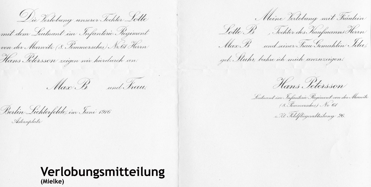 Im Sommer 1916 verlobte er sich. Am 21. Oktober 1916 fällt Hans Petersson als Angehöriger der